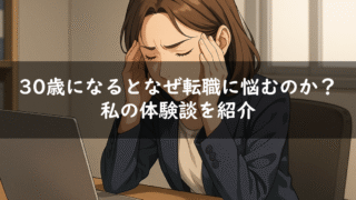転職関連 30歳になるとなぜ転職に悩むのか?私の体験談を紹介 「この仕事のままだとあまり良い将来がイメージできないけどこのままでいいのかなあ」「30歳になって色々見えてきて転職した方が良いのかなあ」転職を考えている人は「今の仕事で本当に良いのか」と常に感じていると思います。私も感じていました。特に30... 2025.06.20 転職関連