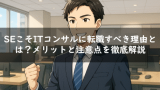 転職関連 SE経験者がなぜITコンサルへの転職に有利なのか?コンサルに転職できる経験2選 「SEの経験は、他の職種でも生かすことができるのか」「SEだとスキルが身についている実感がないが、成長できているのだろうか」「このままSEとして働いていて市場価値は高まるのか」SEの方なら、一度はこうした疑問を感じたことがあるかもしれません... 2025.05.26 転職関連