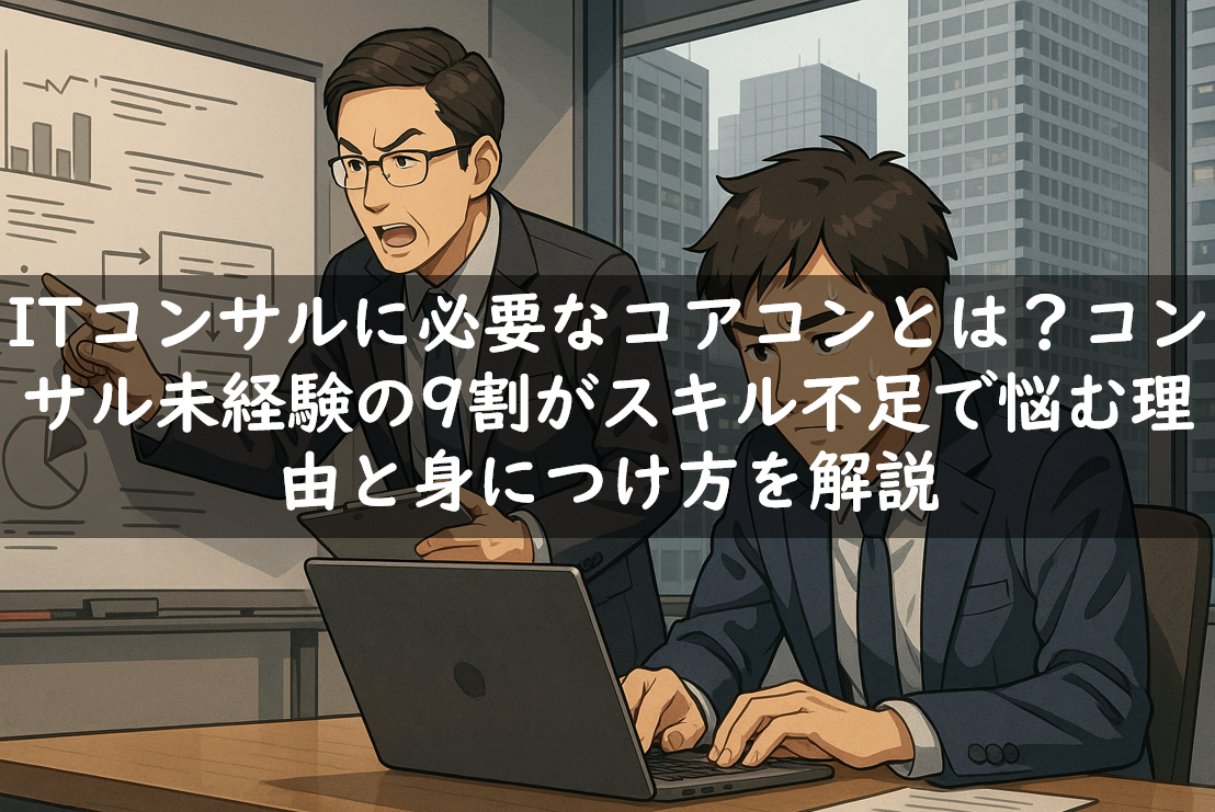 本記事では、SEからITコンサルに転職した私がコアコンスキルが不足したと感じた場面とコアコンスキルの鍛え方について私が感じたことをお伝えします。これから転職を考えている方の参考になれば幸いです。